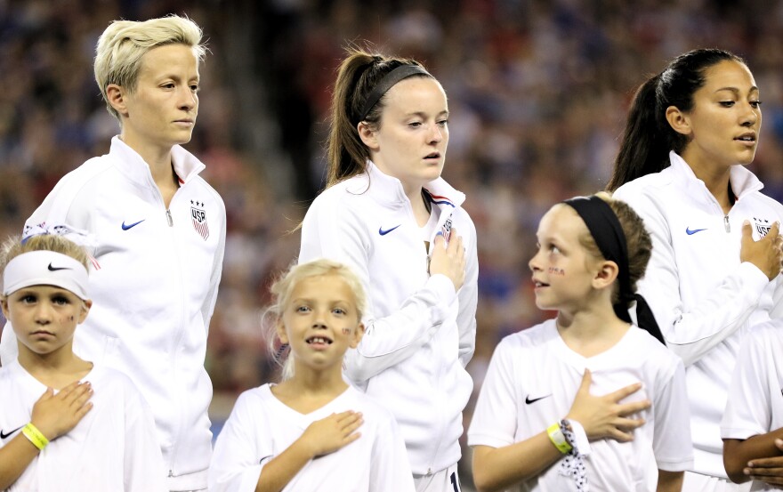 Near her hometown, a viewing party was held Sunday morning at the California Soccer Park in Redding. There, no one seemed to mind if Rapinoe mixed politics with sports.